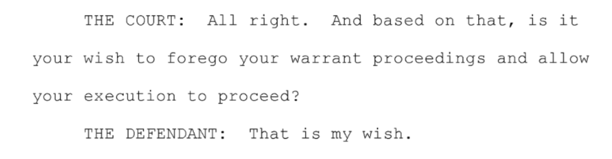 So-called “volunteers” are individuals who waive some of all of their final appeals in hopes to speed up their own execution. Their reasons vary, with some citing immense guilt, hopelessness, or a belief that their life has no value, but the pattern is striking. Analysis by our colleagues at the Death Penalty Information Center have found that roughly 10% of all people executed involve volunteers, a rate that is nearly 10x the civilian suicide rate. For nearly 50 years, it has been known that most volunteers live with serious mental illness or substance use disorders, with some studies placing this number around 87%.