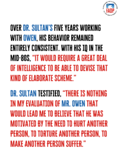 Dr. Sultan testified, “There is nothing in my evaluation of Mr. Owen that would lead me to believe that he was motivated by the need to hurt another person, to torture another person, to make another person suffer.”