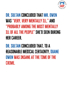 Dr. Sultan concluded that Mr. Owen was “very, very mentally ill,” and “probably among the most mentally ill of all people” she’d seen during her career.