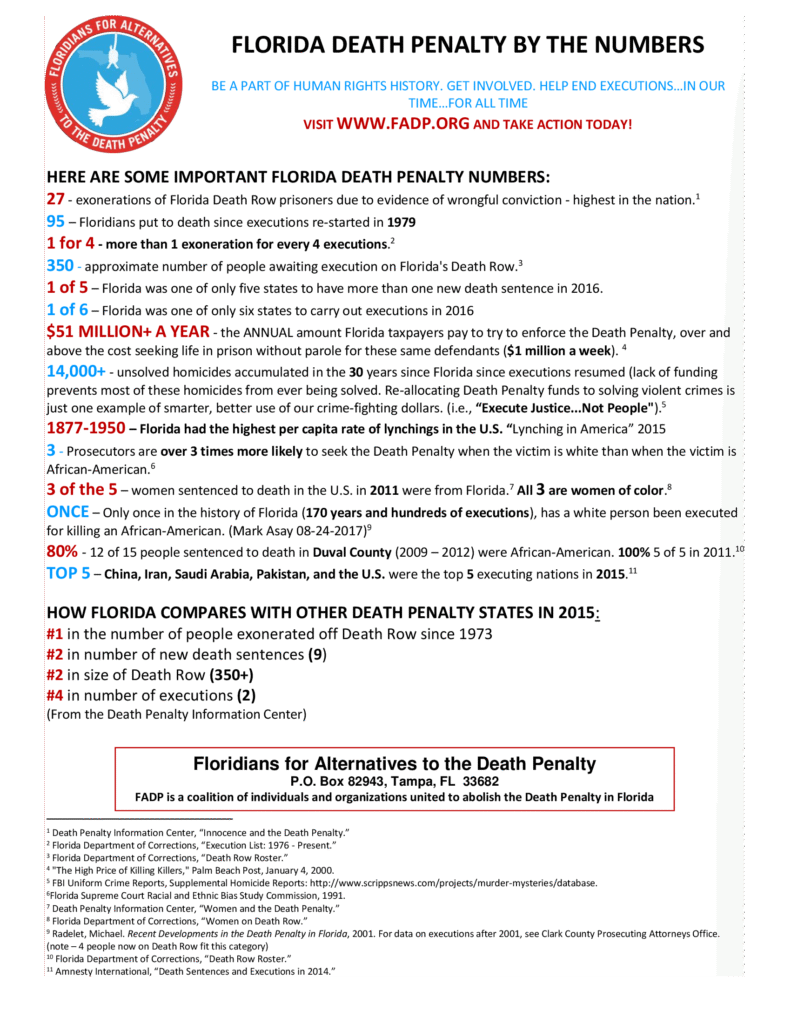 Executions and death sentences in our state have resumed with a vengeance. Your help is needed now. Learn the facts about Florida’s death penalty system and get involved today!