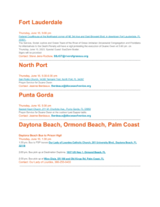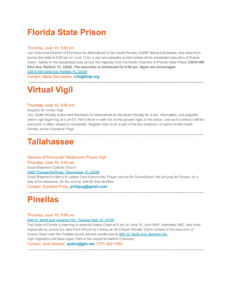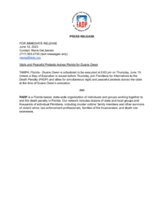 TAMPA, Florida – Duane Owen is scheduled to be executed at 6:00 pm on Thursday, June 15. Unless a Stay of Execution is issued before Thursday, join Floridians for Alternatives to the Death Penalty (FADP) and allies for simultaneous vigils and peaceful protests across the state at the time of Duane Owen’s execution.